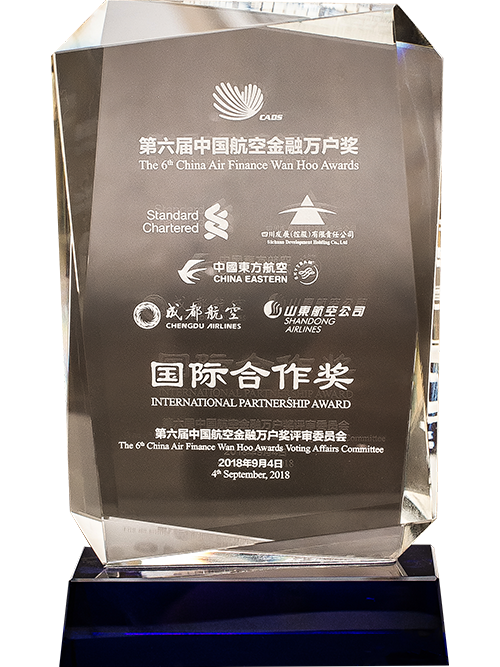 在第六屆中國(guó)航空金融萬(wàn)戶(hù)獎(jiǎng)評(píng)審中榮獲“國(guó)際合作獎(jiǎng)”