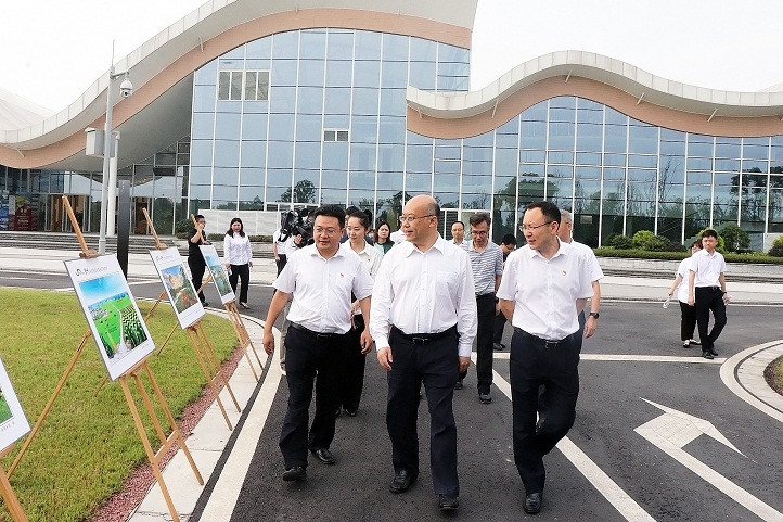 省委常委、組織部長王正譜調(diào)研四川發(fā)展天府國際慢城風吹稻花綜合體項目綜合運營情況。