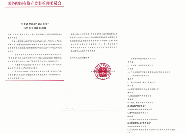 經(jīng)國務院國有企業(yè)改革領導小組批準,新筑股份進入“雙百企業(yè)”名單,成為“國企改革雙百行動”企業(yè)之一。