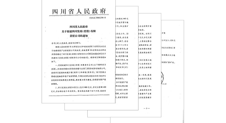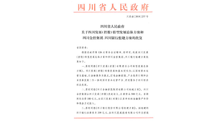 省政府下發(fā)《關于組建四川發(fā)展(控股)有限責任公司的通知》,同意組建四川發(fā)展(控股)有限責任公司。