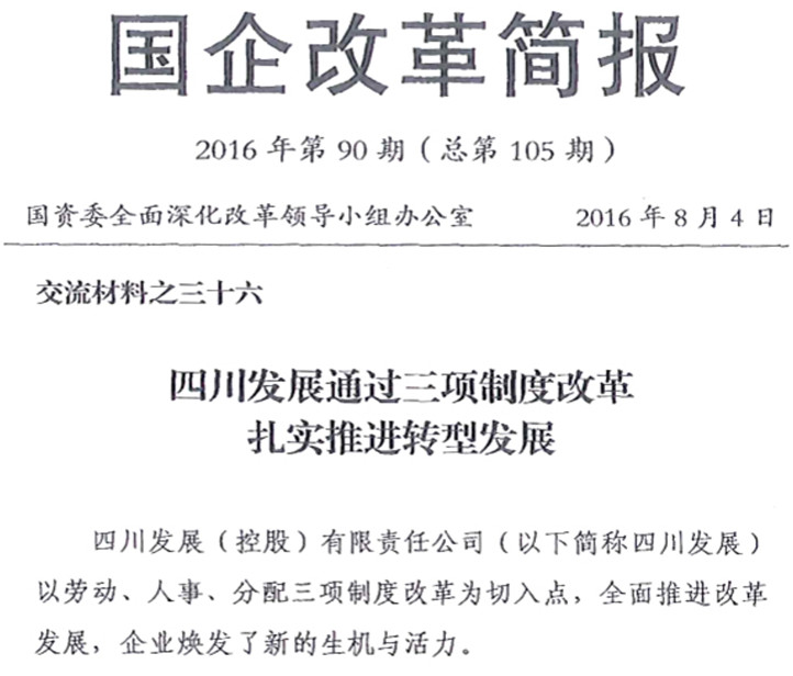 四川發(fā)展召開“深化改革推進大會”,推出集團化管控架構及職能調(diào)整、投融資及資本運作、薪酬體系等的14項重點改革方案以及一系列改革舉措,開啟了四川發(fā)展新一輪全面深化改革新征程